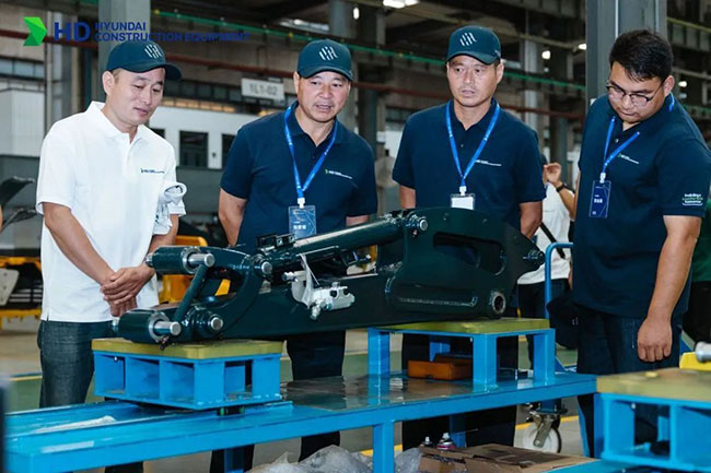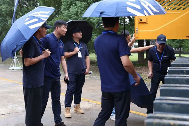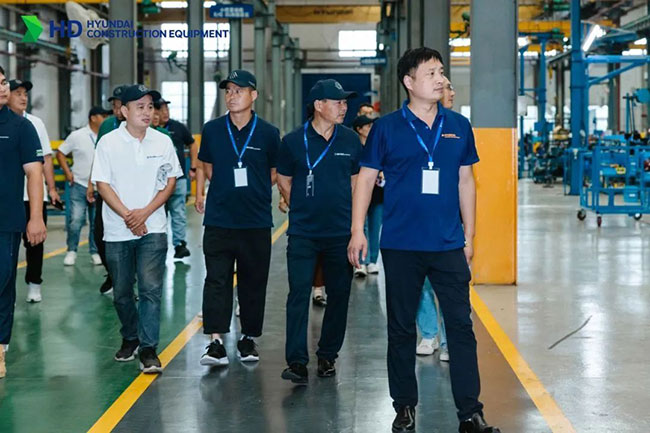 雖然當天細雨綿綿,但絲毫擋不住客戶的參觀熱情??蛻魝兿群髤⒂^了現(xiàn)代文化宣傳館、研發(fā)測試場和組立線。在參觀組立線時,客戶們對現(xiàn)代精湛的制造工藝和制造水平給予了高度評價,在剛下線、正在進行調試的設備旁,紛紛駐足觀看,拍照留念。