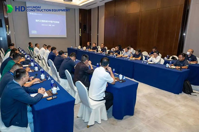 在溝通交流環(huán)節(jié),來自安徽阜陽的張老板,作為一個擁有20多臺現(xiàn)代設備的老客戶表示,多年來現(xiàn)代設備使用總體很滿意,服務較好。本次現(xiàn)場觀摩的39噸設備性能及工藝水平較高,表示有繼續(xù)購買的計劃。來自北京的客戶則對新品輪挖HW155設備性能給予高度評價,同時也希望公司能開發(fā)更多品類的輪挖產(chǎn)品,供客戶選擇。公司領導認真聽取了客戶的意見和建議,表示會認真研究,努力對應,爭取給客戶一個滿意的答復。